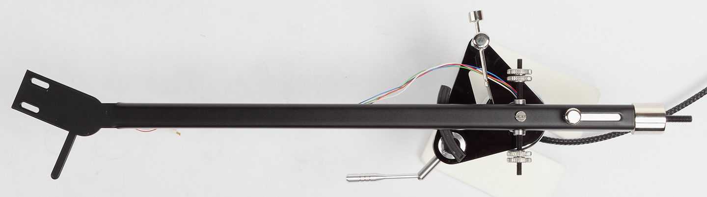 Внешне тонарм узнаваем — та же металлическая окрашенная в черный цвет трубка переменного сечения, та же возможность трехточечного крепления для головок Rega, и тот же подход к настройкам. Но металлических частей больше — это и хвостовик тонарма, и база для крепления к столу. Хотя пластик в этой модели тоже имеется.
