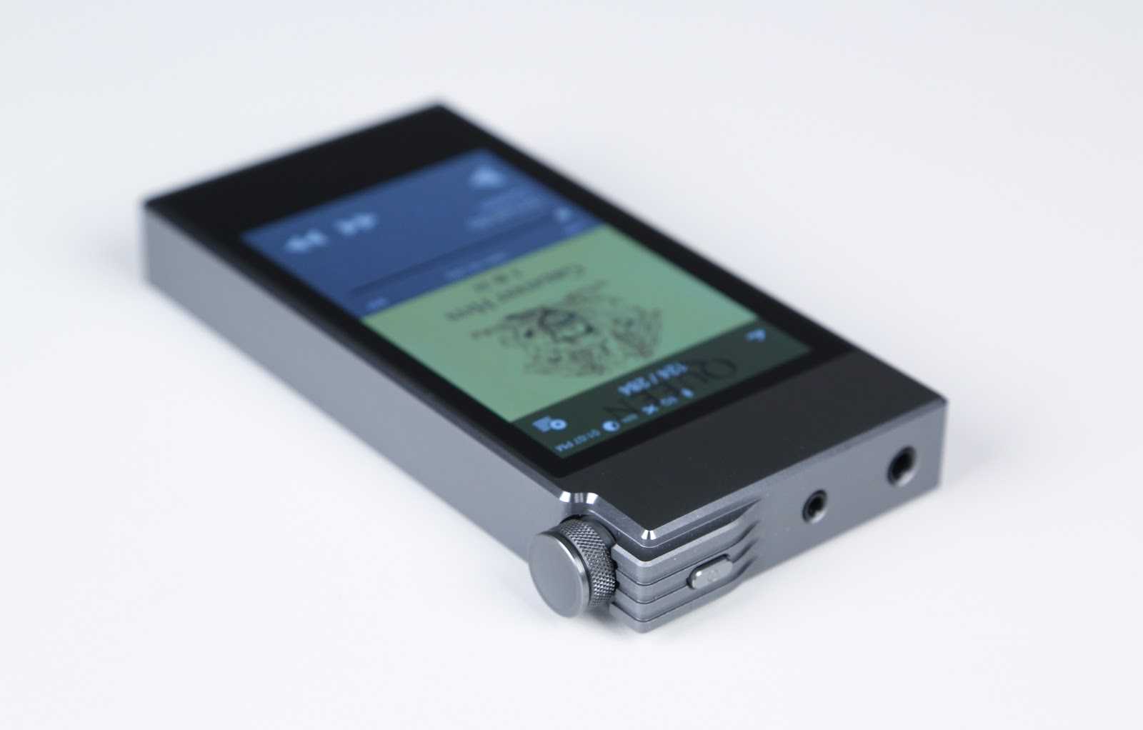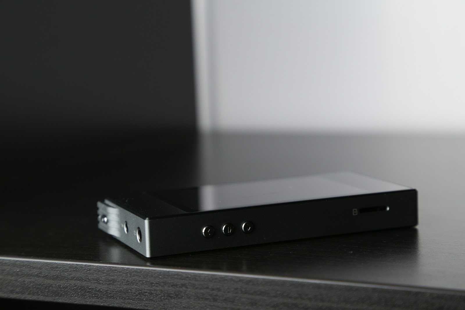 На боковых панелях граненого алюминиевого корпуса расположились кнопки переключения треков и одна, которая отвечает за управление воспроизведением. Сверху — кнопка включения, а также два выхода — 3,5 мм для наушников и балансный 2,5 мм. Присутствует слот для карты памяти microSD объемом до 128 ГБ. Учитывая, что встроенная NAND-память аудиоплеера составляет 64 ГБ, совокупного объема памяти будет вполне достаточно. Регулятор громкости сделан в виде 150-шагового аналогового механического потенциометра.