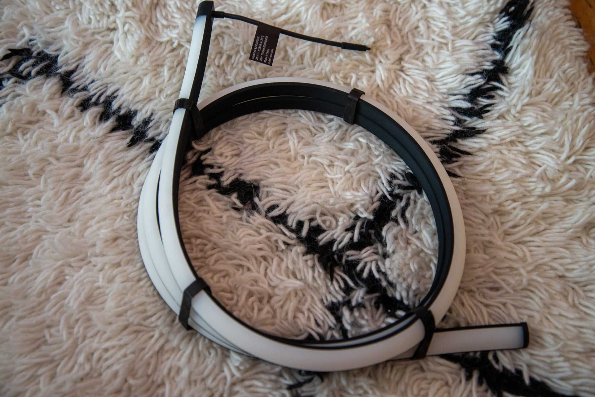 Next, you have to fit the two corner brackets, aiming to have the lightstrip’s ends finish flush with the bottom of your TV. Finally, there are two bottom brackets. Getting everything in place is fiddly, and you may find that your brackets sit in slightly odd places: I’ve got an OLED TV that’s thinner at the top than it is at the bottom, so had to play around to find the ideal location for the brackets.