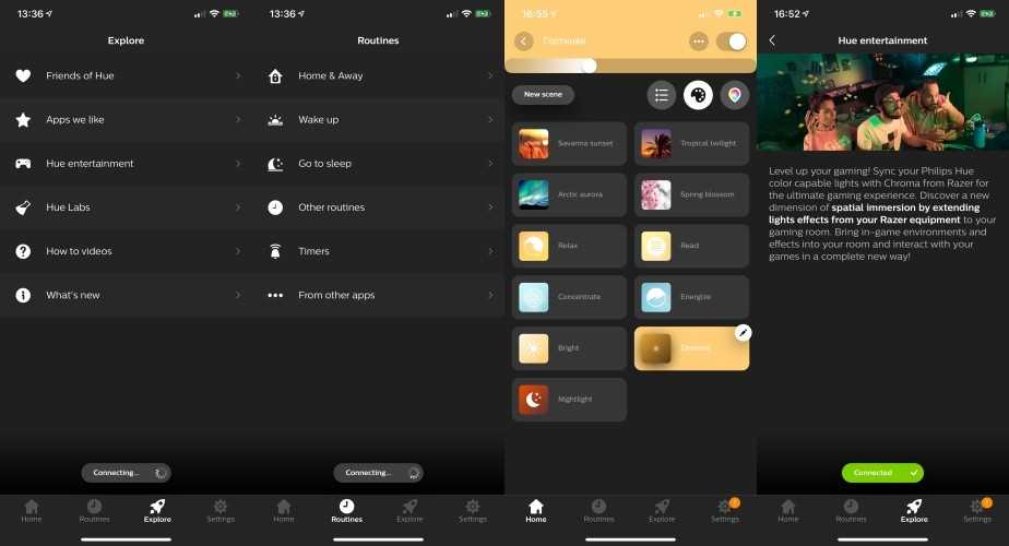 Все действия, связанные с подключением Philips Hue Play интуитивно просты и потребуют минимум манипуляций.