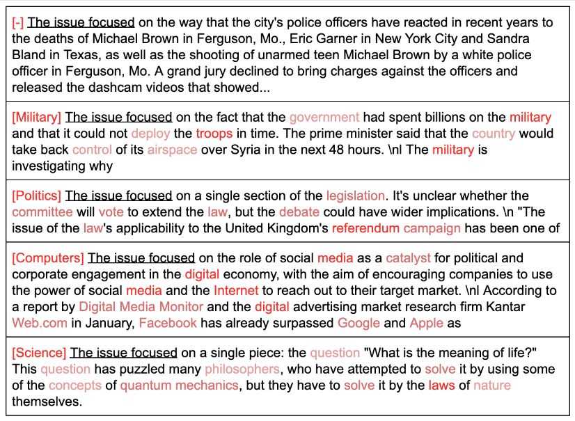 Результаты для тем , , и , начинающихся с одного и того же префикса, показаны ниже. Самый первый пример — генерация без заданной темы.