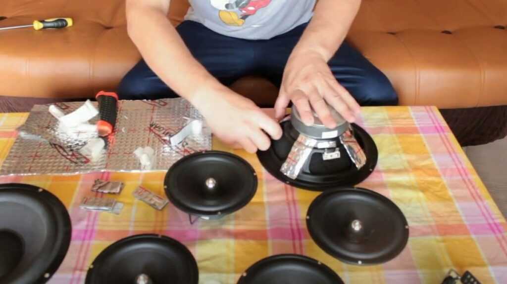 После наклейки вибропласта, звук у корзин динамиков, при постукивании по ним металлической отверткой, становится плотный и совсем нет звона от металла. Это как раз то, что нам нужно было достичь.