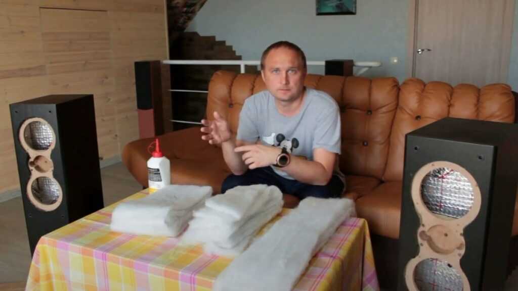 Нужно полностью демпфировать внутренности корпуса. Что такое демпфирование? Это просто – подавление волновых колебаний звука внутри корпуса колонки. Именно это делается проклейкой стенок акустики внутри слоем синтипона.