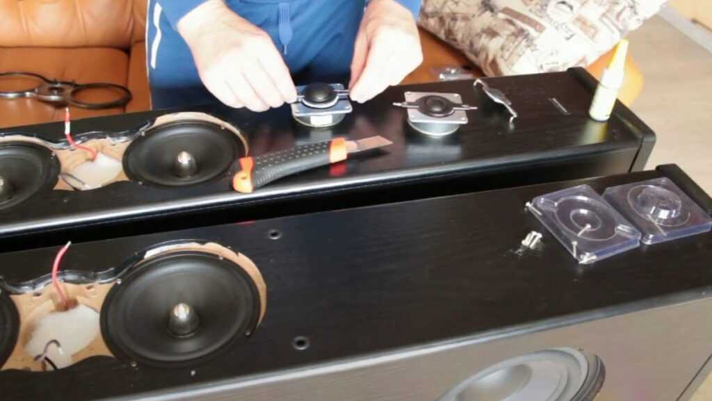 Снимаем высокочастотные динамики и меняем “купол” динамика на заранее купленные, новые, с некоторыми другими характеристиками.