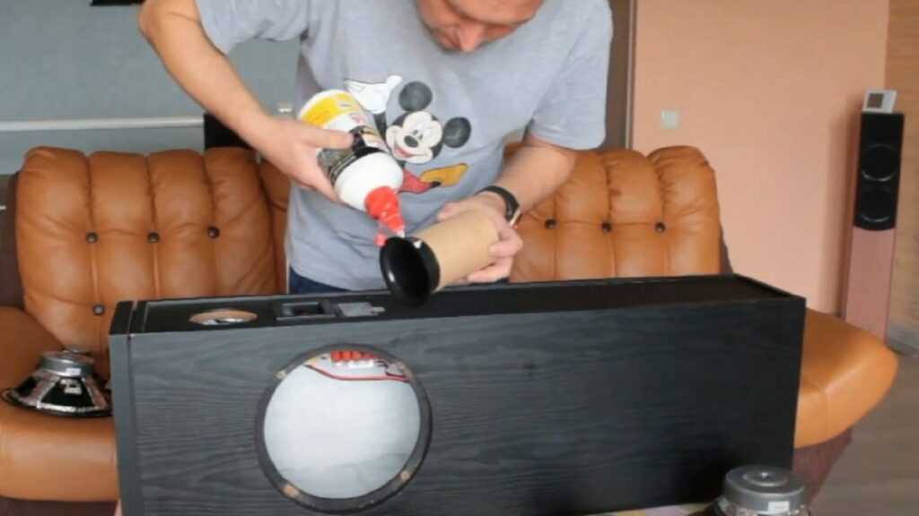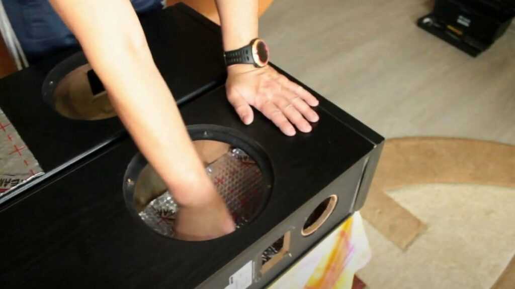 Синтипон будет поглощать большую часть колебаний внутри корпуса, что поможет исключить лишние призвуки внутри колонки. Акустика будет издавать только те звуковые волны, которые исходят на слушателя из динамиков и фазоинвертора.