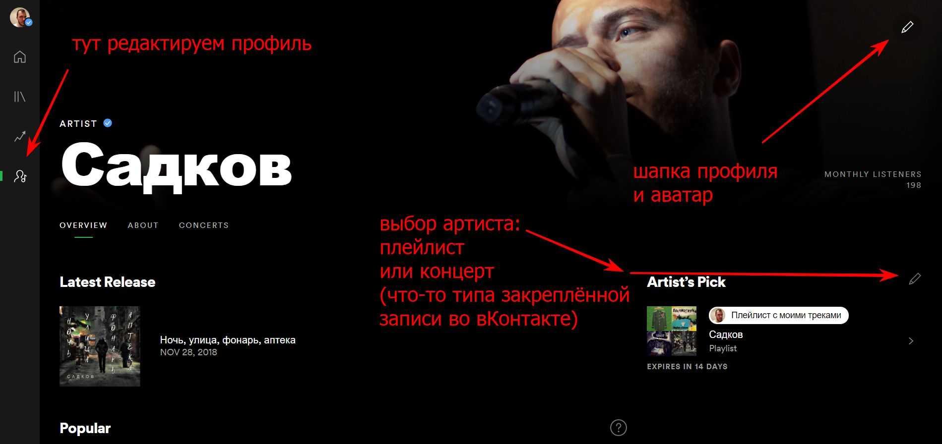 Spotify for Artists по своему назначению совпадает с Apple for Artists, но возможностей предоставляет намного больше. И по части редактирования вашего профиля, и в сфере аналитики.