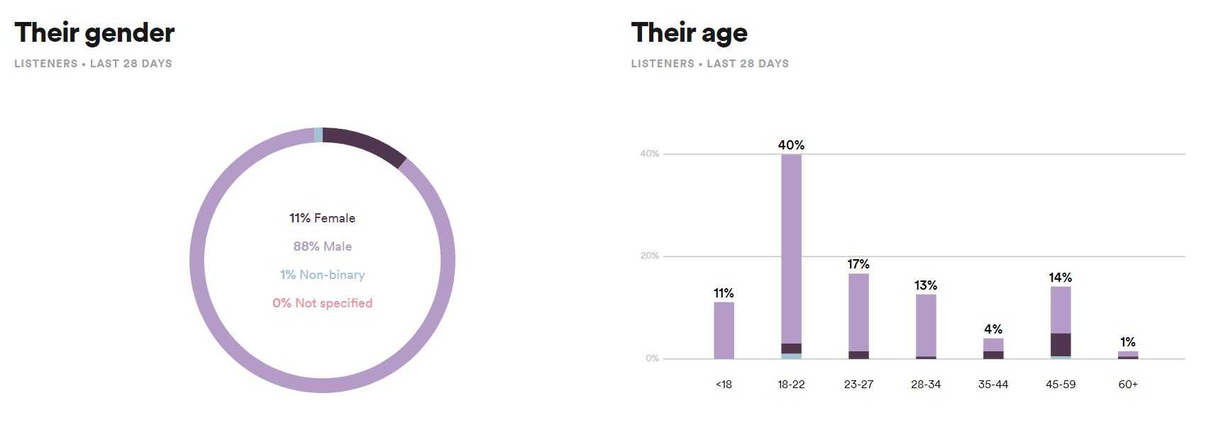 Но. Для креативщиков спотифай может стать хорошим инструментом достижения узких аудиторий. Правда, без аналитики (как внешней, так и внутренней от самого спотифая) о демографии слушателей можно только догадываться.