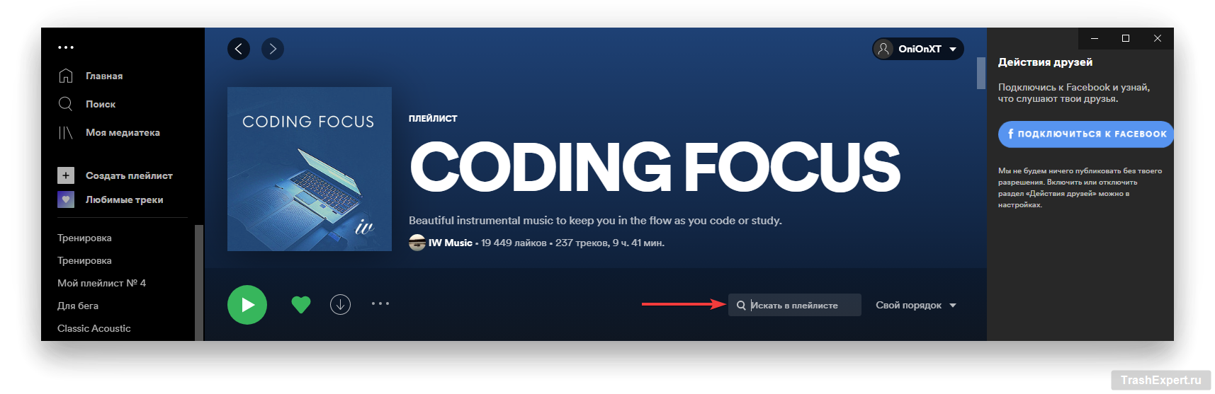 В Spotify можно в реальном времени следить за тем, какую музыку слушают друзья. Для этого к аккаунту Spotify надо привязать Facebook. Как это сделать: