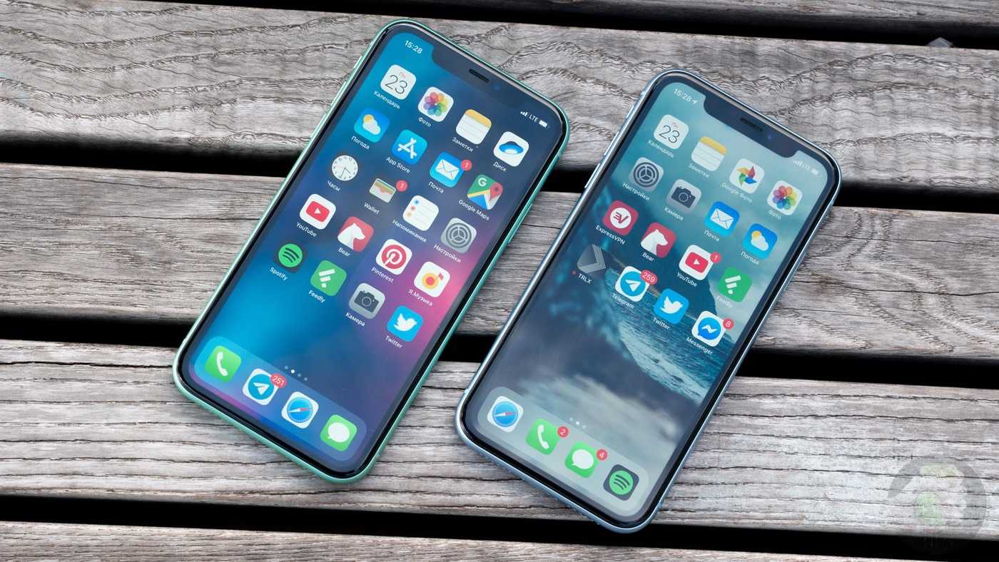 Отличить iPhone 11 от iPhone XR можно по двойной камере и новым цветам корпуса. Вместо кораллового, ярко-жёлтого и голубого цветов появились сиреневый, бледно-жёлтый и мятно-зелёный. Неизменными остались чёрный, белый и красный.