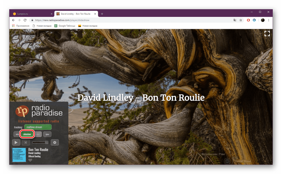 Режим «Slideshow» убирает всю ненужную информацию, оставляя только плеер и периодически сменяющиеся картинки на фоне.