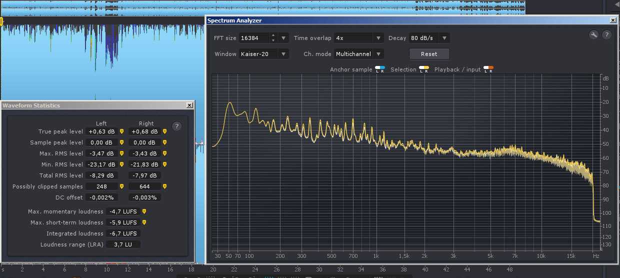 Как видите, несмотря на довольно высокий битрейт, громкость регулярно тыкается в 0 дБ и вызывает массу искажений, связанных с клиппингом. Хотя вот говорят, Spotify взялся за ум.