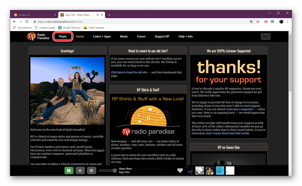 - Перейдите на главную страницу, воспользовавшись указанной выше ссылкой, а затем выберите раздел «Player».