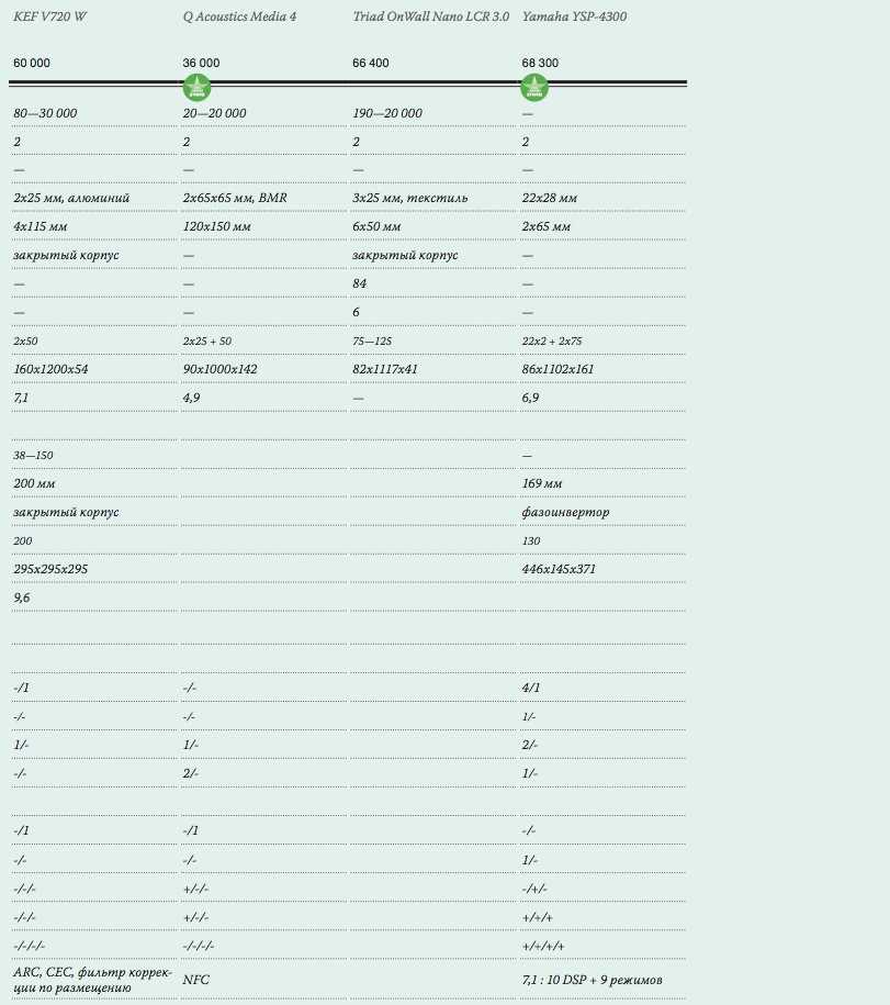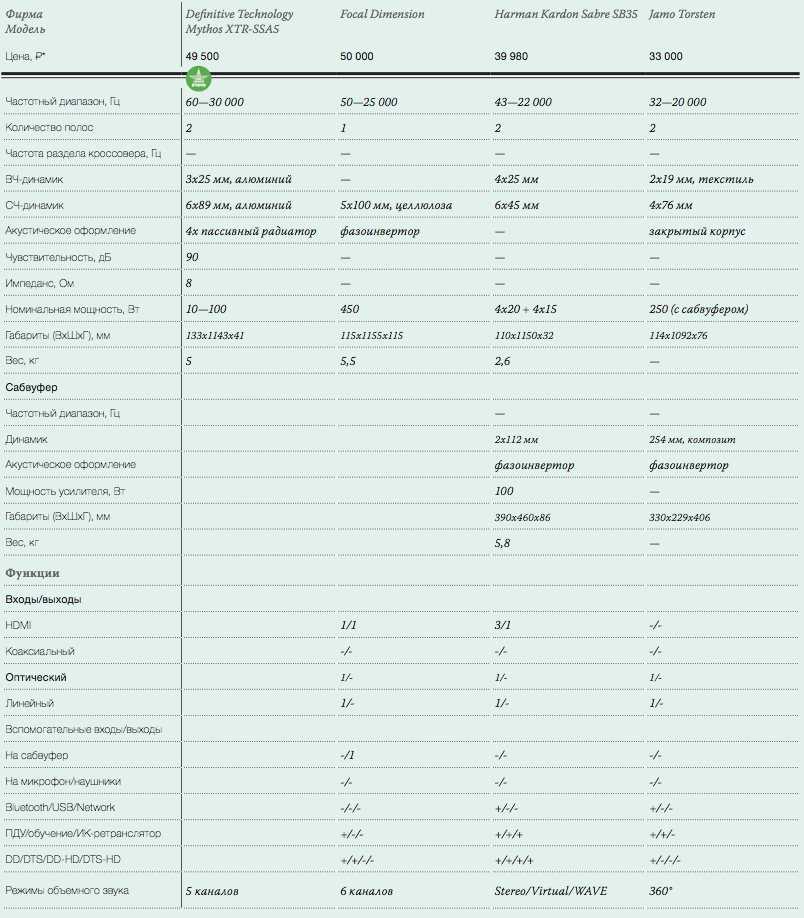 | Polk Audio Signa S1 | 100 | 6,8 | MP3, MPEG4 HD, WAV, WMA, WMV | Dolby Digital | от 17 990 до 18 550 |