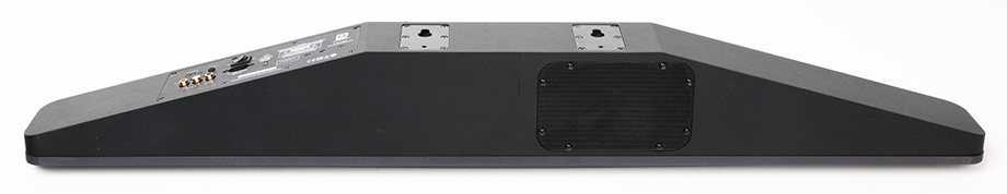 Подход британской компании Q Acoustics к созданию саудбара особый. В то время как многие компании, воспользовавшись удобной возможностью цифровой обработки сигнала, включают всевозможные объемные и частотные «улучшайзеры», Q Acoustics остается верной идее наиболее достоверного воспроизведения звука.Также компания выяснила по статистическим данным, что типичный слушатель старается избежать использования дополнительных устройств и соединений. Поэтому отдельный сабвуфер для модели Media 4 не предлагается, а просто он встроен уже в сам саундбар (впрочем, выход на внешний сабвуфер все же предусмотрен). Конечно, от этого пострадала толщина устройства (142 мм), но его так же несложно разместить на стене, как любой другой саундбар. Используются два BMR-излучателя размером 65х65 мм и один басовый динамик с двойной катушкой и размером 120х150 мм. Распределение мощности усиления соответственно 2х25 Вт + 50 Вт (общая мощность 100 Вт). Звуковой сигнал устройство принимает с линейного входа (разъемы RCA и миниджек), с оптического входа (только PCM) и по соединению Bluetooth 3.0 с поддержкой NFC и кодека aptX (наиболее качественный кодек для iOS и Android устроойств с возможностью управлять громкостью).