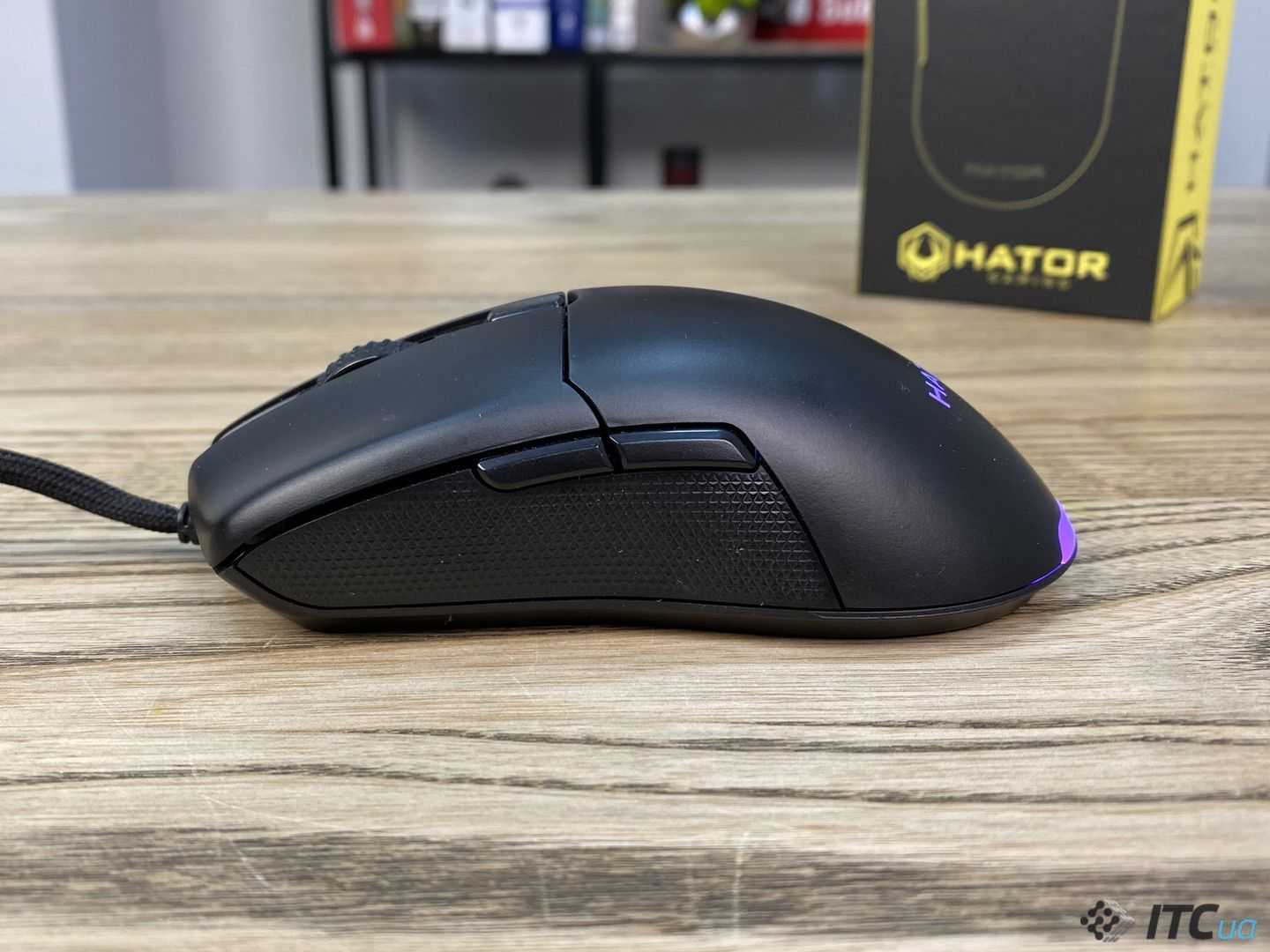 Как вы уже могли заменить, Hator Pulsar — это проводная мышь. Но наличие провода не испортило впечатление от легкого корпуса. Провод легкий, скользкий, за коврик не цепляется.