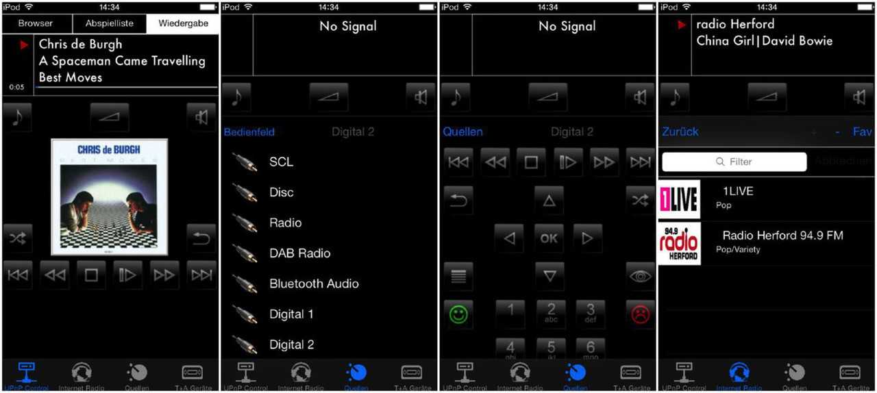 Непосредственное управление ресивером осуществляется либо с пульта ДУ, либо с помощью фирменного приложения. Версия ПО для Android выглядит довольно архаично по архитектуре, а дизайн словно заимствован из интерфейса Windows 95. Компания обещает ее осовременить в ближайшем будущем. Для устройств Apple обновленная версия уже вышла, она отличается, как минимум, симпатичным и наиболее приспособленным к размерам телефона дизайном. В целом, приложение удобнее, чем родной пульт, поскольку позволяет видеть на экране гаджета список файлов, хранящихся на флешке или UPnP-сервере. Если же вы решите пользоваться по старинке пультом, названия файлов придётся читать с двухстрочного дисплея ресивера.