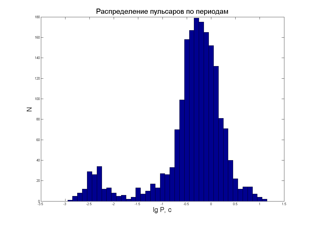 Распределение пульсаров по периодам