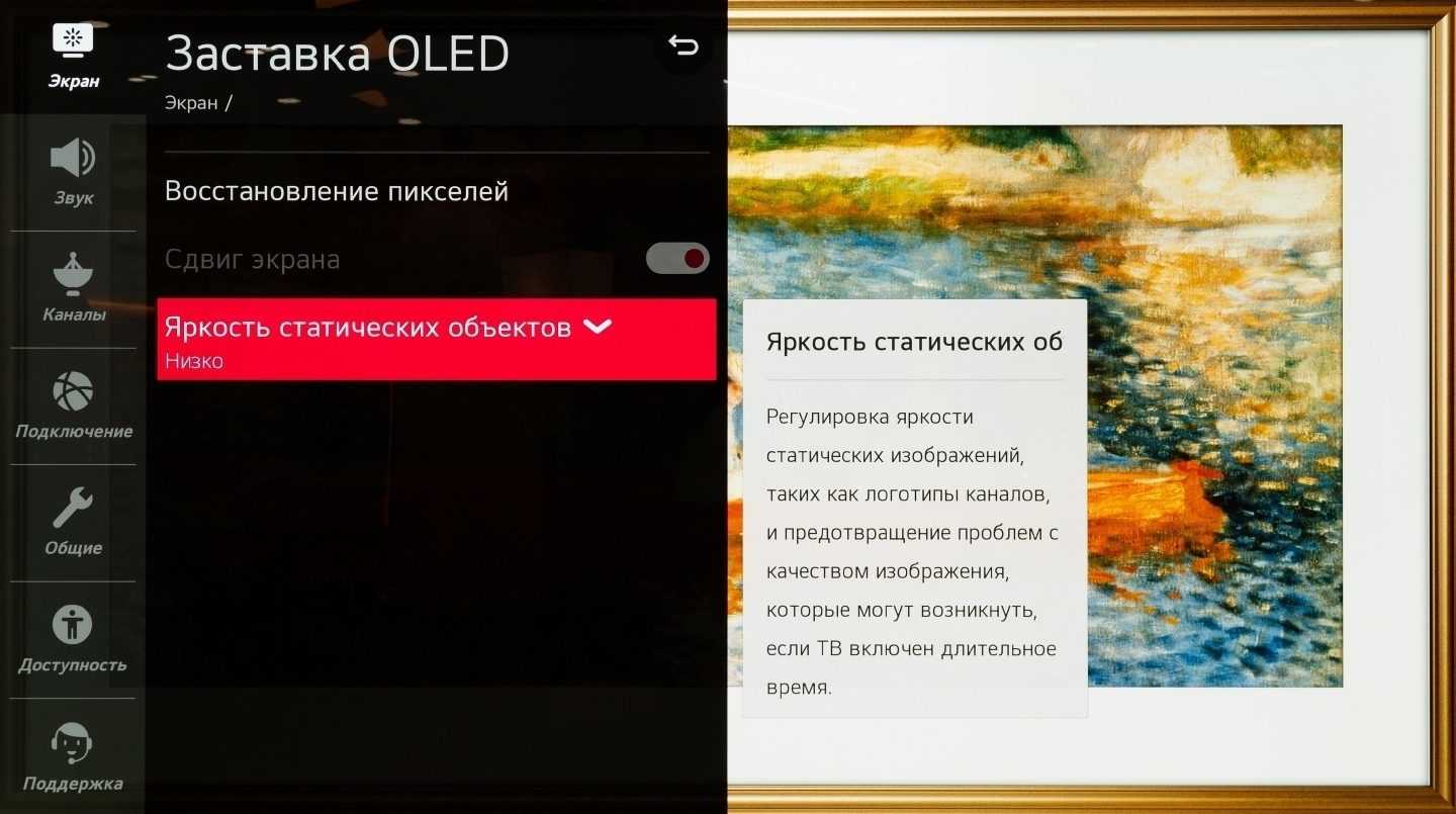 Однако влияет на качество не только процессор, но и сама OLED-панель. Она быстрее ЖК, поэтому ей не так нужны улучшайзеры для нормальной передачи движений. Так что кино в режиме Filmmaker Mode выглядит не размазанным, а очень по-киношному естественным. И, конечно, натуральные цвета и высокая реальная контрастность делают любой просмотр приятнее — тут у OLED пока нет конкурентов.