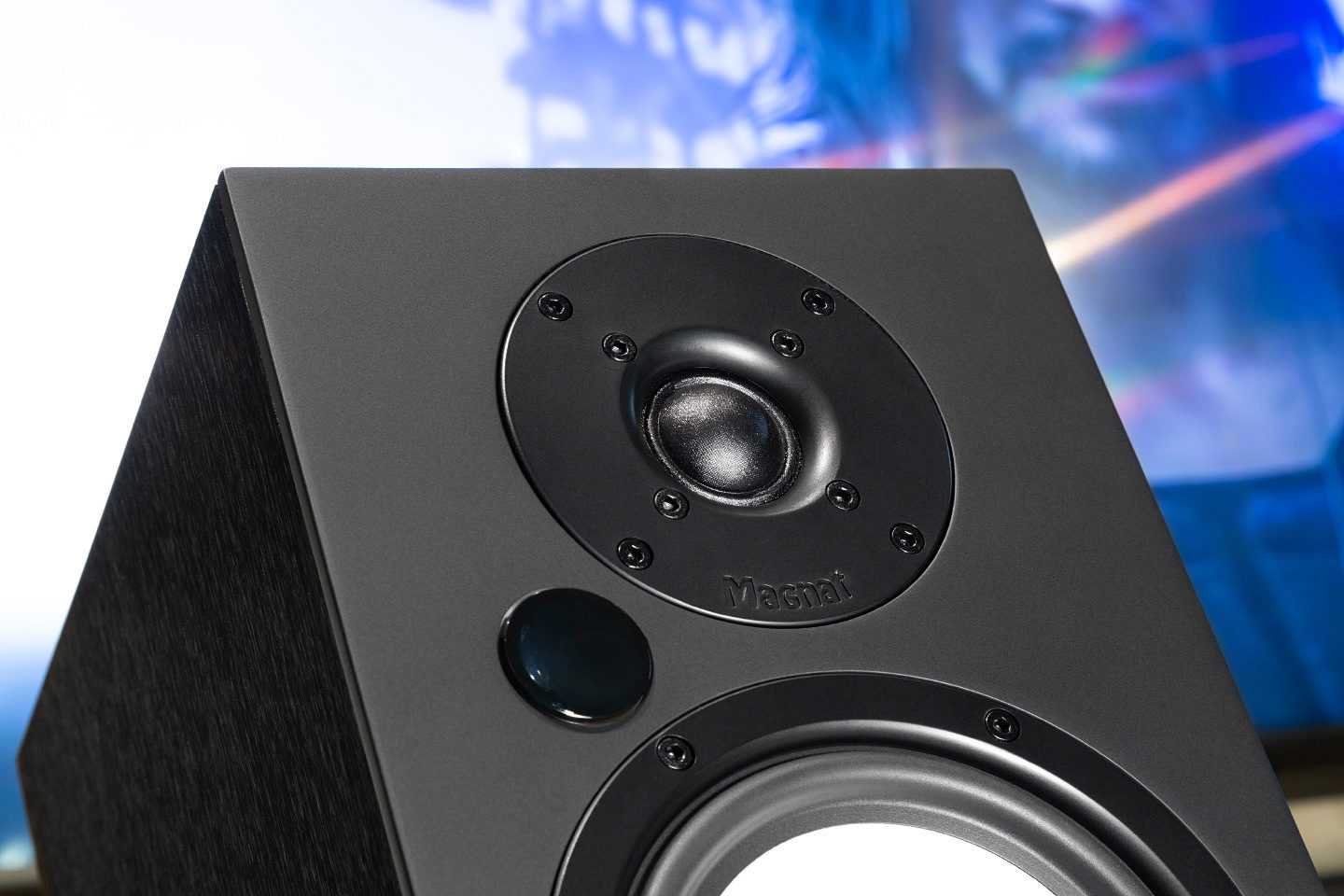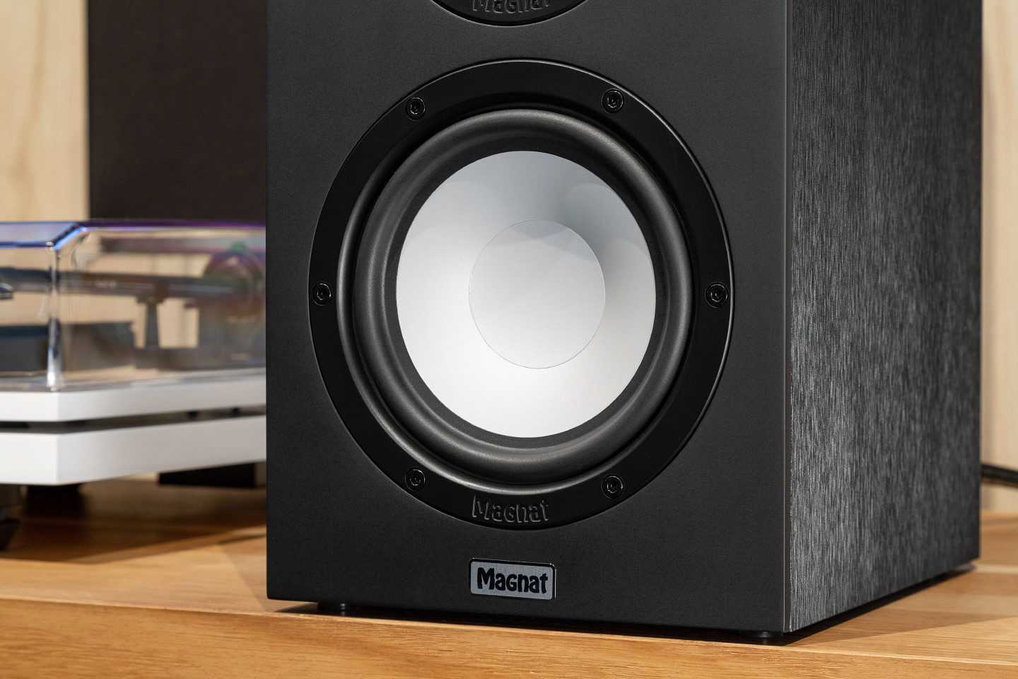 Визуально они практически ничем не выделяются — это черные матовые двухполосники с корпусами из МДФ самых привычных полочных пропорций. За высокие частоты отвечает фирменный дюймовый твитер Fmax, играющий до 40 кГц, за мидбас — 125-мм динамик с сэндвичной мембраной из алюминиево-керамического композита.