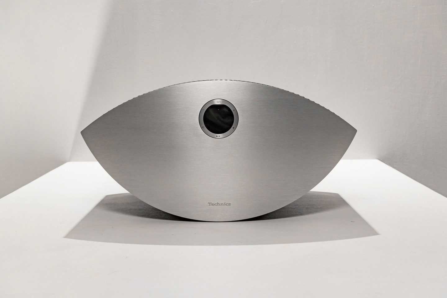 Przednią i tylną część obudowy tworzą dwie składające się części: z jednej strony mamy miękką, szarą maskownicę; z drugiej futurystycznie pręgowany panel-radiator z wycięciem na sekcję gniazd w dolnej części. Technics zastosował nowoczesny wyświetlacz typu OLED (wkomponowany w górną płytę), otoczony ramką z sześcioma przyciskami.