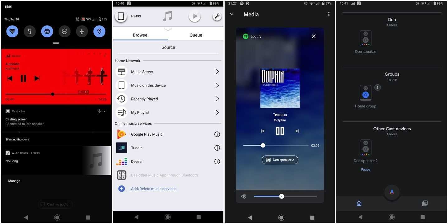 При воспроизведении с Android через Chromecast лучше всего себя показал PowerAmp — с плеером не было вообще никаких проблем, разве что небольшое подтормаживание при включении самой первой композиции. Да и со Spotify ситуация очень даже неплохая: обновление плейлиста иногда зависало, но при этом колонка вместе с приложением задумывалась на пару секунд, а потом, когда приложение успешно синхронизировалось с реальностью, спокойно продолжала играть с того же самого места. Чуть более капризно вел себя Deezer, но его капризы легко лечились перезапусками.