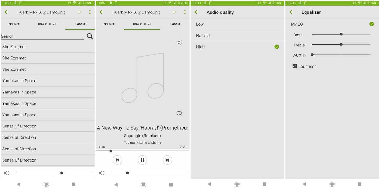 Всем можно управлять через приложение Ruark Link, которое аккуратно организовано и простое в использовании.. Все источники удобно собраны на одной странице, что упрощает переключение между списком воспроизведения Spotify, накопителем NAS, любимой радиостанцией и музыкой, хранящейся на смартфоне.