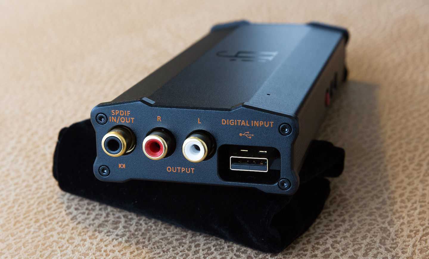 Кроме вышеуказанного порта, коммутация включает 6,3-мм джек для наушников, два гнезда USB — для подключения цифровых источников и их зарядки, второй миниджек для ввода аналогового стереосигнала и два тюльпана для его вывода. Интересно, что если ЦАП принимает поток по USB, тот же сигнал можно снять с цифрового тюльпана в коаксиальном включении, то есть аппарат умеет работать конвертором интерфейсов. Если же на USB сигнал отсутствует, RCA переходит во входной режим, принимая по оптике или коаксиалу PCM с частотой квантования вплоть до 192 кГц.