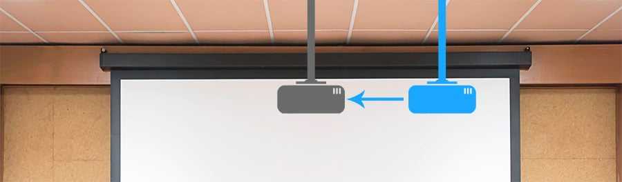 Я предполагаю, что у вас есть правильное положение слева направо для вашего проектора – есть только одна центральная линия от экрана, которую нужно крепить, поэтому трудно ошибиться, но расстояние от экрана – другое история