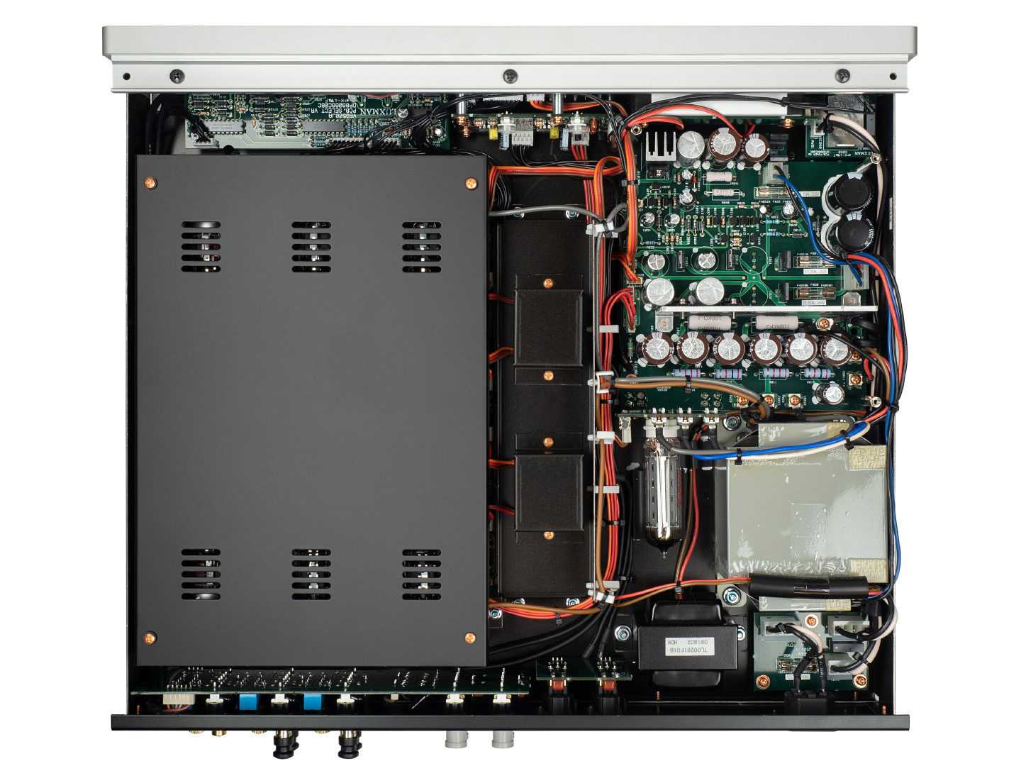 Как и в других моделях на протяжении ряда лет, лампы установлены производства словацкой JJ Electronic. Видно, что спецзаказ с маркировкой и подбор на уровне, но сами лампы можно поставить под вопрос. Впрочем, как и почти в любом другом ламповом аппарате. Но конкретно к ламповому вопросу я вернусь позже.