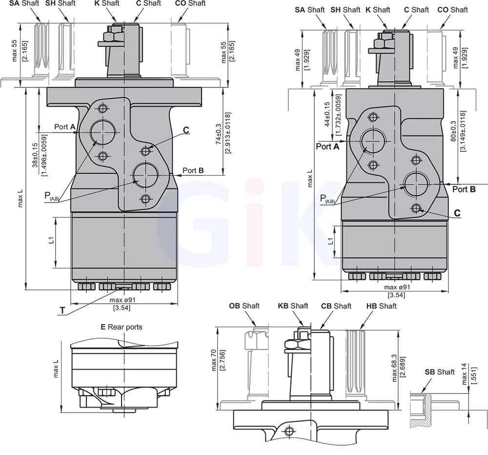 Размеры гидромоторов MP