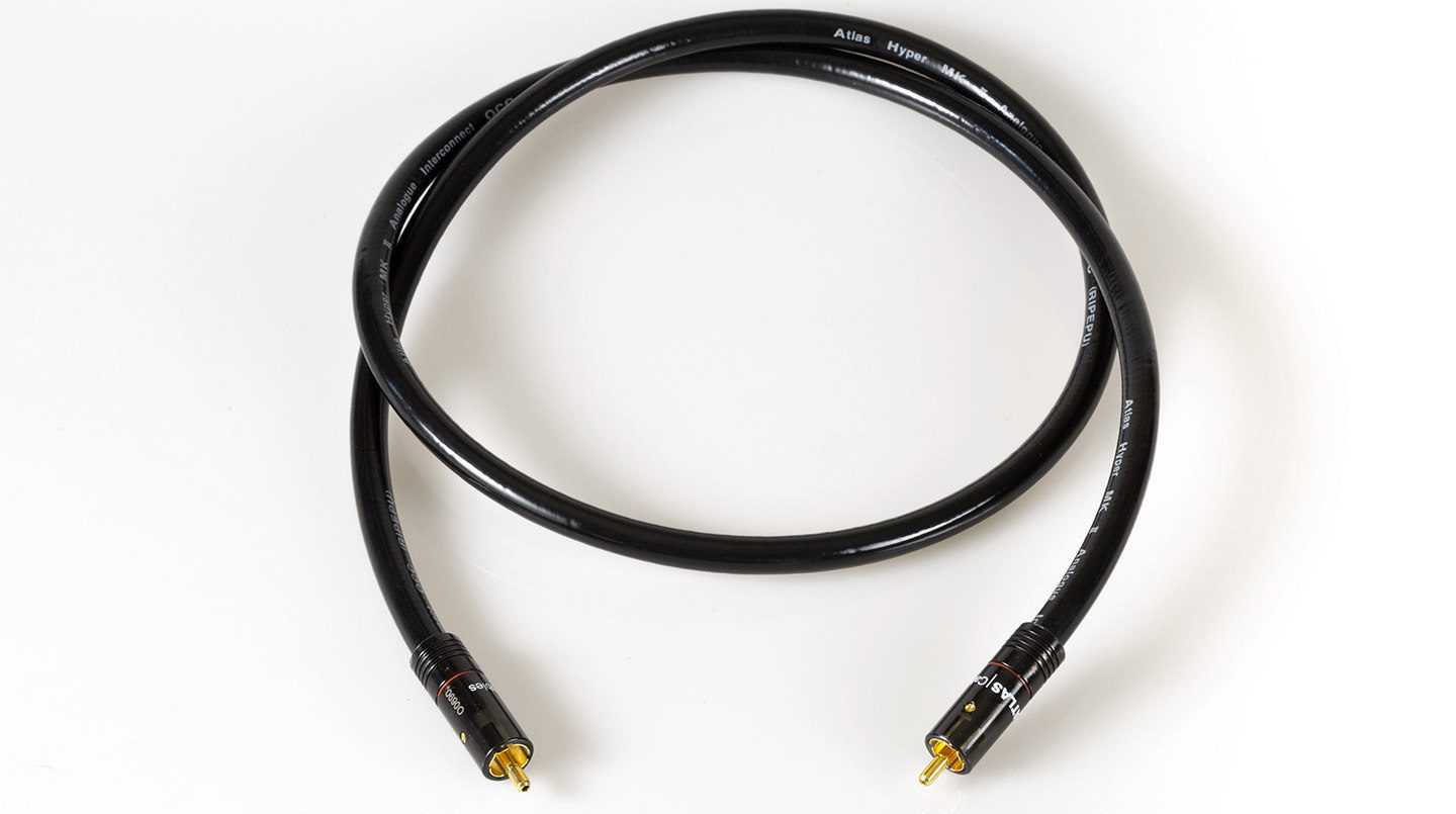 Модель межблочника постарше— Atlas Hyper MKII — немного толще и жестче. Проводники изготовлены из сверхчистой 6N OCC меди, а диэлектрик — так же вспененный полиэтилен. Разъемы у этого кабеля внешне практически схожи, разницу я нашел только в том, что у Hyper MKII корпуса изготовлены из темного пластика. Отмечу, что эти RCA-разъемы маркированы цифровыми кодами (видимо, по ним фирма может определить происхождение кабеля), отдельно они не продаются.