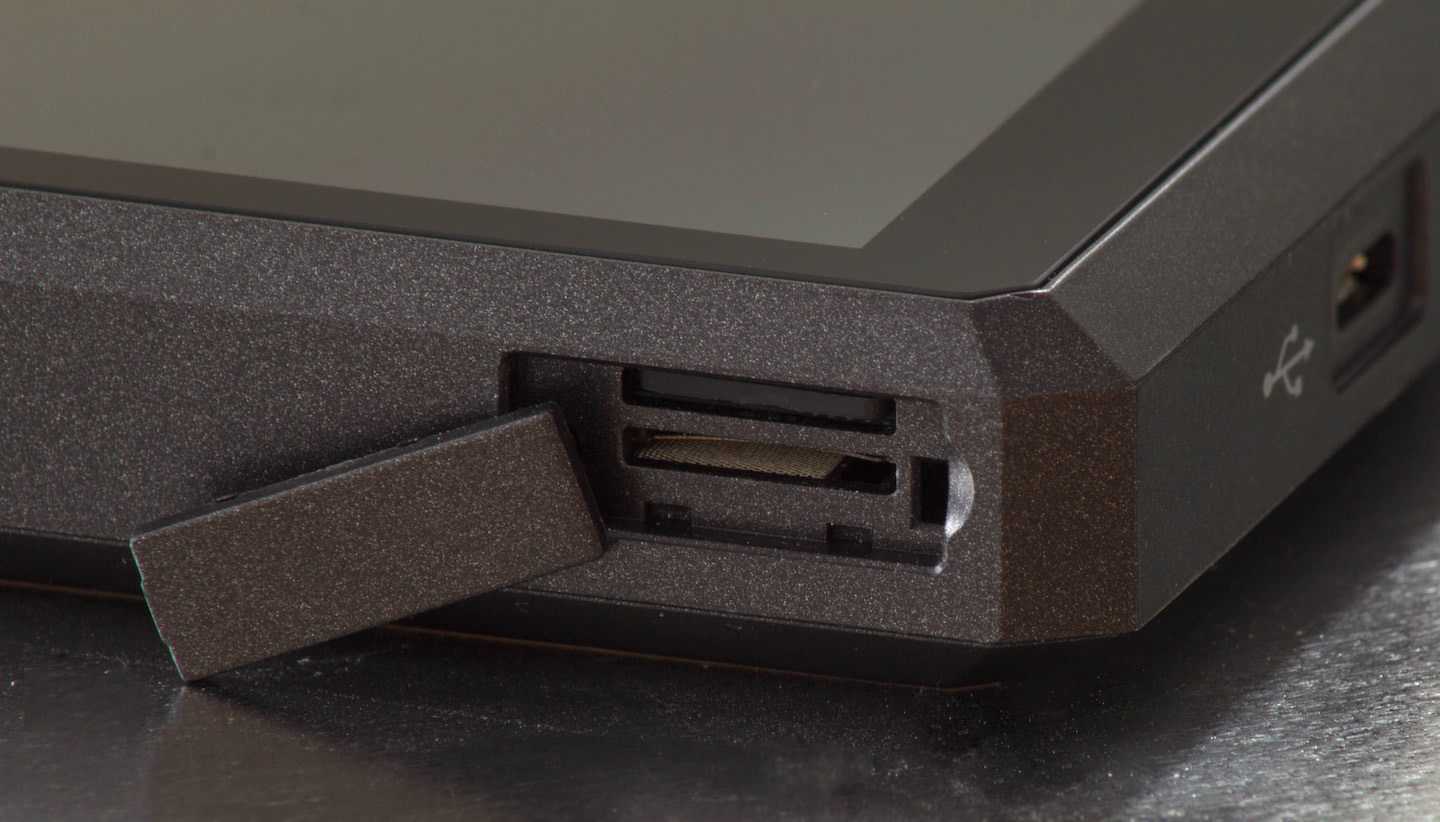 Два слота для карт памяти спрятаны под заглушкой. Заглушка держится крепко, не открывается