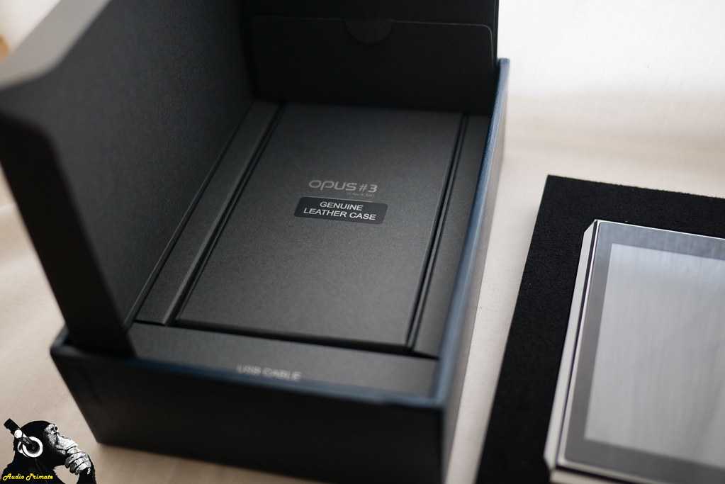 The packaging is a simple affair. Simple embossed silver leaf writing on an off-black sleeve telling us that we have an Opus #3 Hi-Res Audio player in our hand on the front and the left side. On the back, the stats unfurl in a detailed table running down the page written in matte silver writing. Some writing is indecipherable for me due to my lack of Korean character knowledge. The table is broken into general specifications and audio performance. If you were to ever see this in a shop, you’d have a pretty good idea of what you were getting. The packaging is fairly understated and functional.
