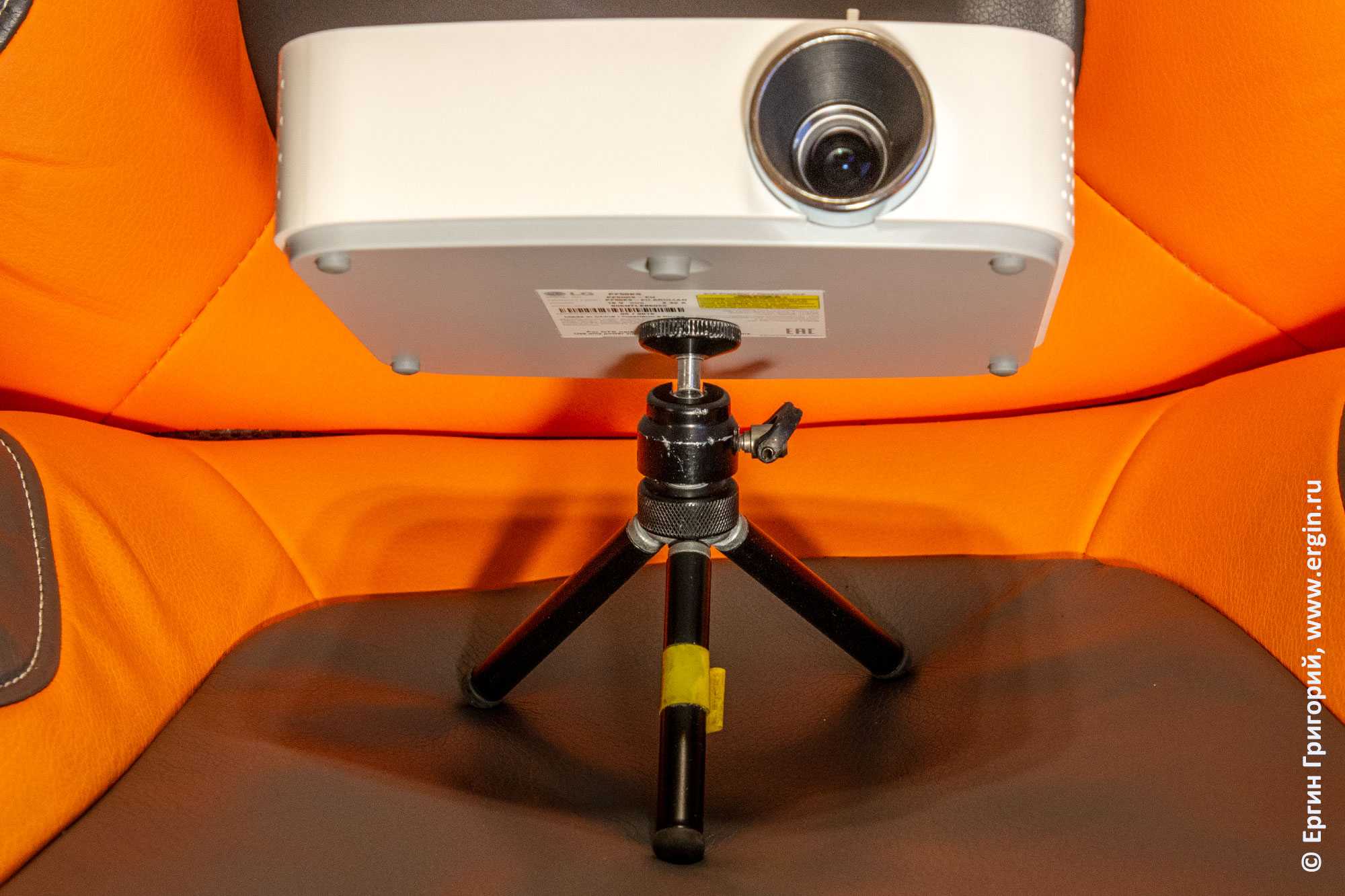Причем справится абсолютно любой штатив, столь невелика масса проектора: