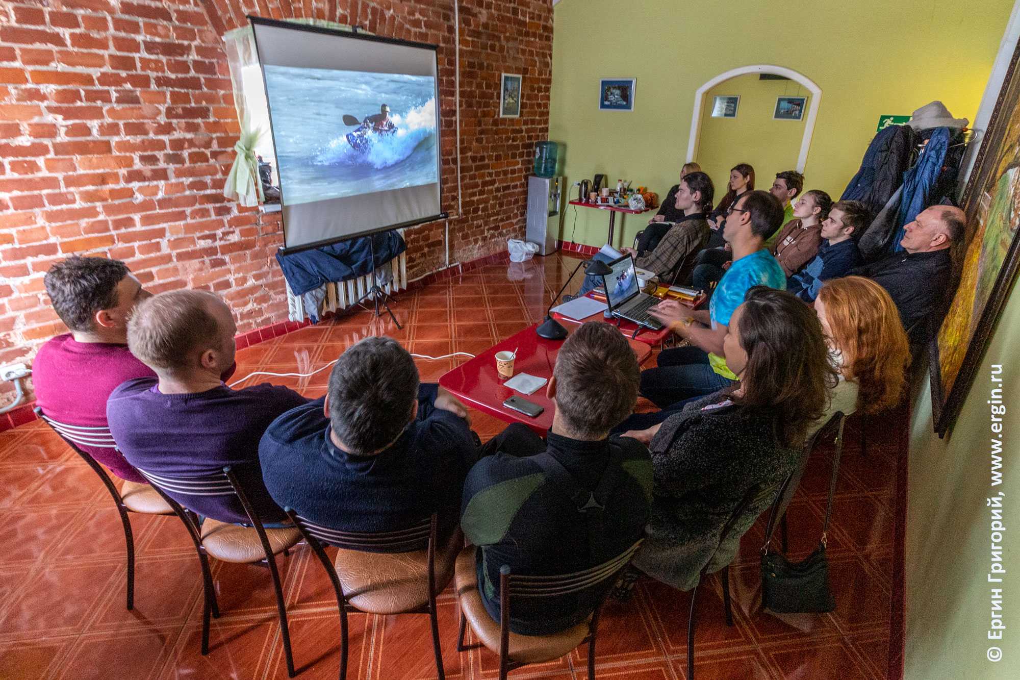 Неизменно возникает необходимость наглядной демонстрации видеороликов для аудитории от 10 до 30 человек — при таком количестве людей с ноутбука или обычного офисного монитора показывать неудобно: не все участники семинара видят нюансы. На фото — занятия детской группу по каякингу, теория — задний ряд грустит: