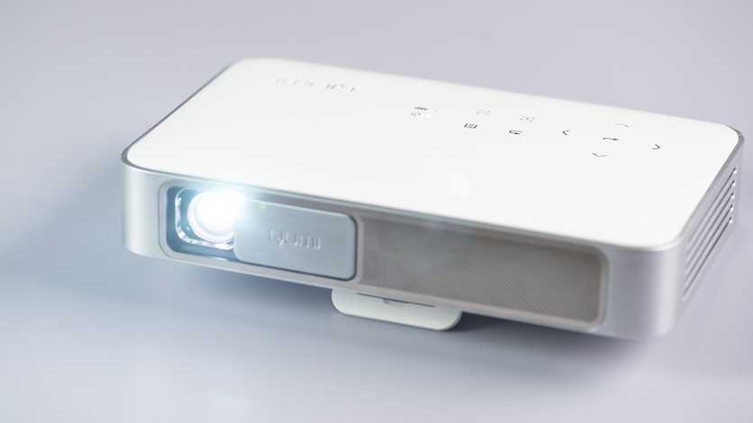 Высокотехнологичный гаджет. Управляется прикосновениями к изображению. Много установленных приложений и сервисов. Может использоваться как мультимедийный центр, подключившись через Bluetooth к внешней акустике. Имеет датчики температуры, давления, движения, освещения, приближения, GPS, и т.д. Трехматричная система обеспечивает четкую цветопередачу при разрешении 1366×768. По мнению многих — лучший компактный проектор. Как недостаток можно отметь низкую яркость — 100 лм. При малейшей засветке изображение блекнет и теряет контрастность. Это не позволяет рекомендовать девайс для офисов.