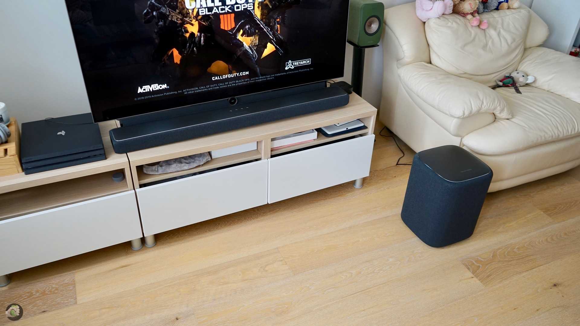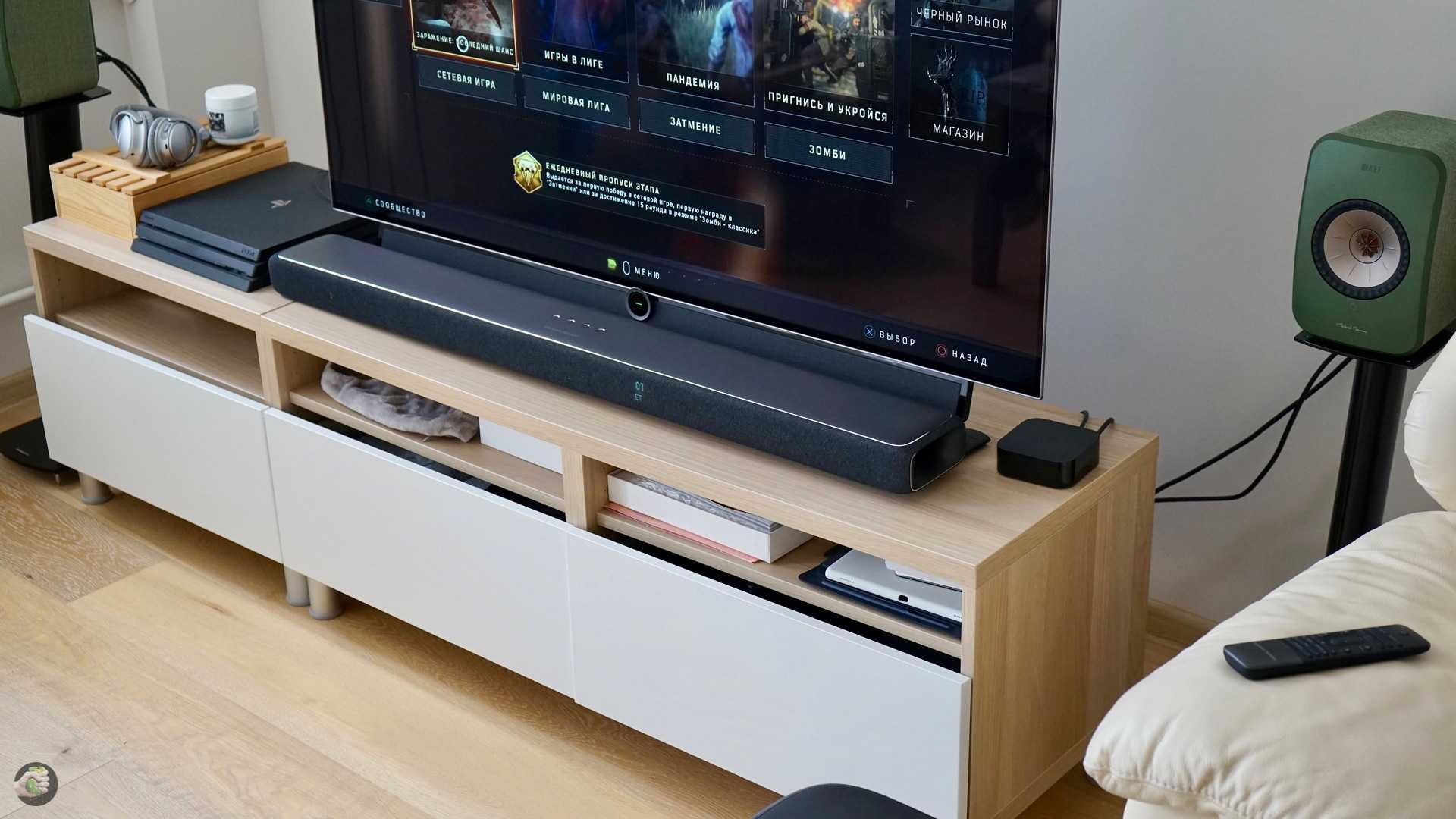 При установке не забудьте оставить слева и справа от саундбара достаточно места для звуковых волн. Ну и вообще, лучше не делайте, как я: вокруг «саба» всё-таки должно быть ещё больше места.