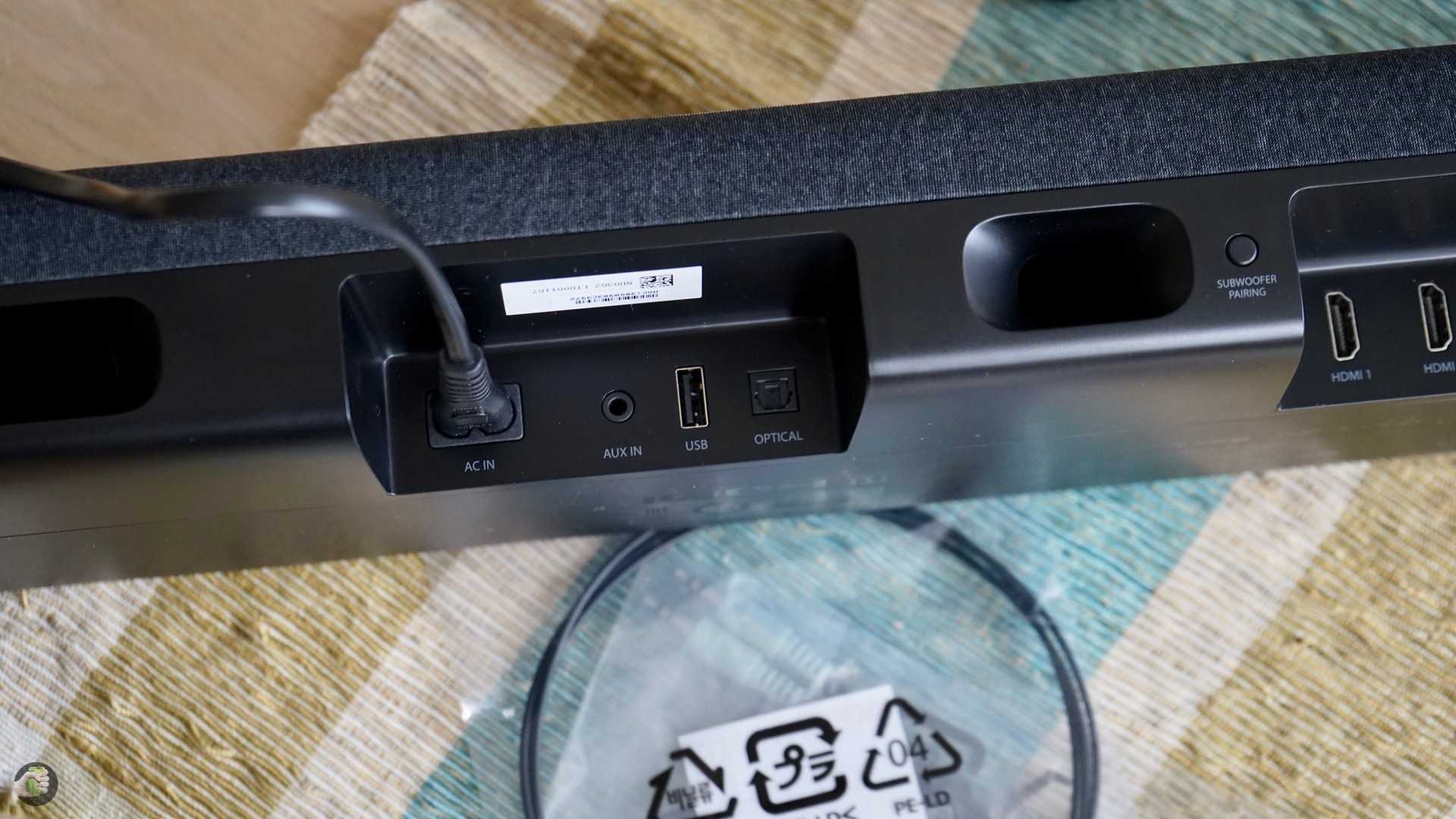 Для подключения к телевизору модель использует разъем HDMI ARC. Прослушивать же музыку со смартфона или другого гаджета можно с помощью Bluetooth- или USB-подключения. Также на панели имеется оптический аудиовход.