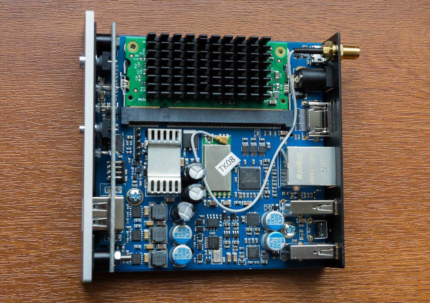 Под самым большим радиатором скрывается процессорный модуль Raspberry Pi