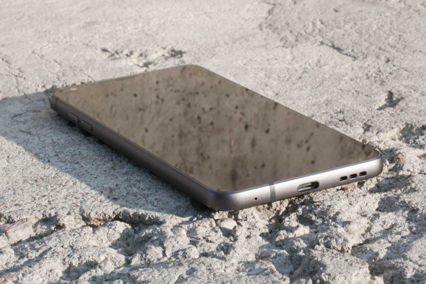 По контуру смартфон охватывает рамка из матового металла с парой пластиковых вставок. Могу сказать, что тесты на падение смартфон прошел без повреждений: металл не погнулся, стекла не треснули, царапин не прибавилось. Так что для неуклюжих пользователей он более чем подходит.