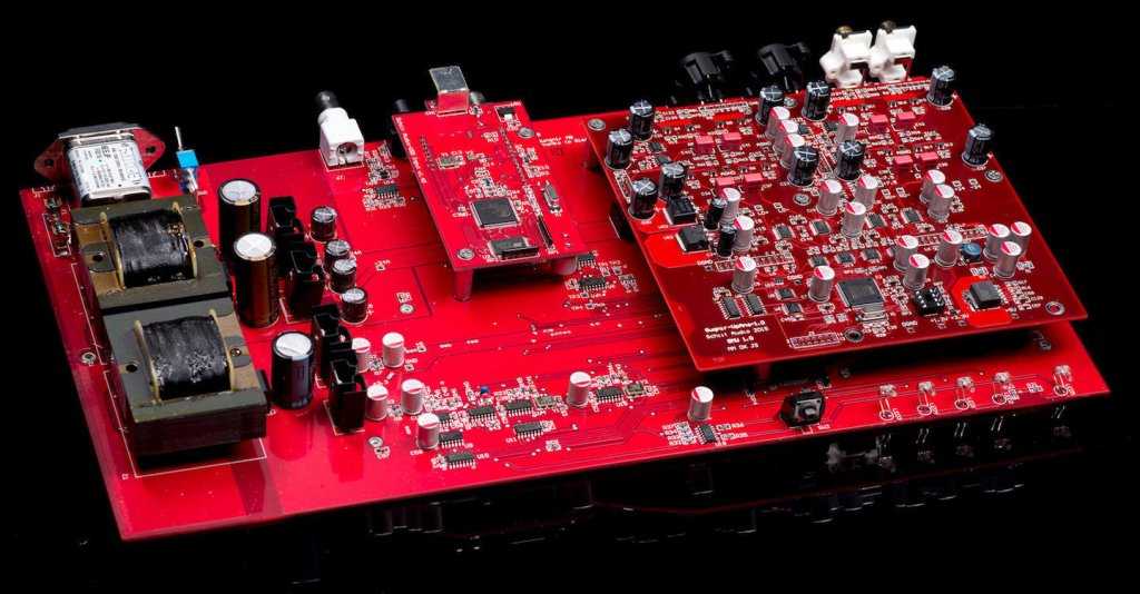 Цифровой фильтр мультибитовой версии построен на базе программируемого DSP Analog Devices семейства SHARC, считающегося одним из лучших решений для обработки данных с плавающей точкой. Работает сигнальный процессор совместно с четырьмя (схема-то балансная) одноканальными высокоточными 18-битными DAC’ами Analog Devices AD5781BRUZ, разработанными главным образом для медицинской и измерительной аппаратуры. Аналоговый тракт построен на дискретных JFET-транзисторах, то есть — полевиках с управляющим p-n переходом, разделительные емкости не используются. Интересно, что несимметричный выход построен на отдельном суммирующем каскаде с применением все тех же JFET-элементов. Кстати, подобная топология используется и во флагманском ЦАПе Schiit Yggdrasil.