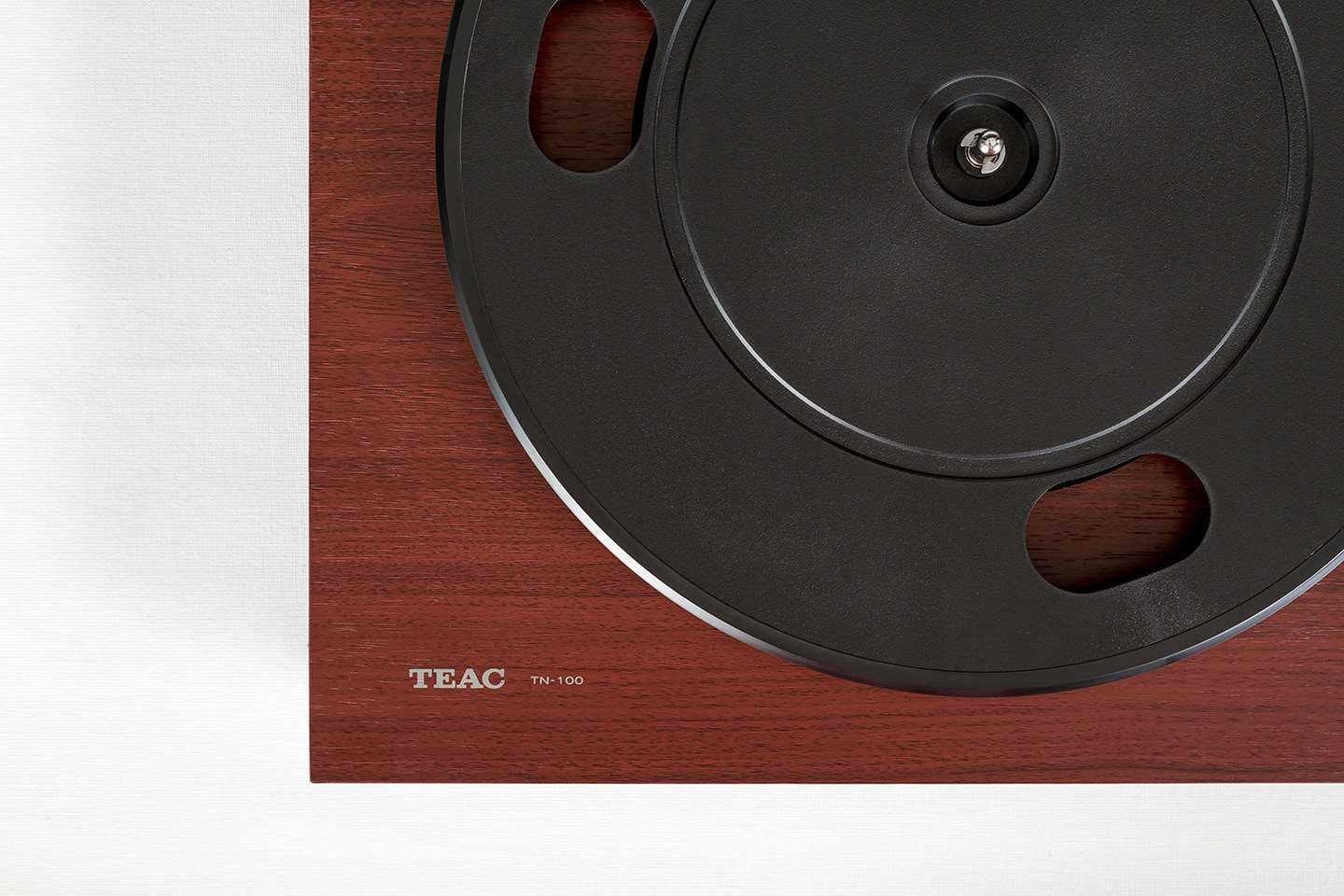 В отличие от многих недорогих моделей проигрывателей TEAC TN-100 имеет шасси из ДВП, которое обеспечивает хорошее механическое демпфирование пластинки и тонарма для гашения нежелательных вибраций. Пластиковый опорный диск дополнен ковриком из неопрена, который дополнительно улучшает антирезонансные характеристики проигрывателя. Опорный подшипник изготовлен из нержавеющей стали, отполирован с высокой точностью и помещен в бронзовый стакан.