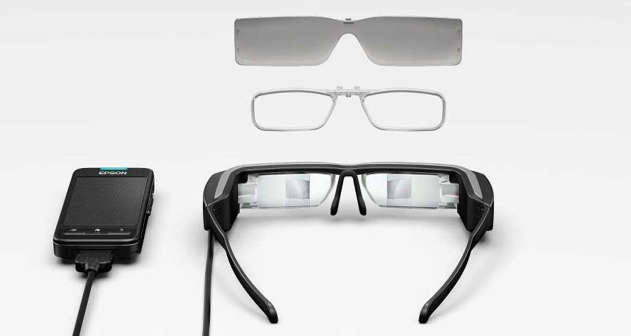 В начале 2016 года компания Epson представила очки дополненной реальности Epson Moverio Pro BT-2000. Это бинокулярные видеоочки дополненной реальности с поддержкой беспроводного подключения к устройствам управления и ввода информации.