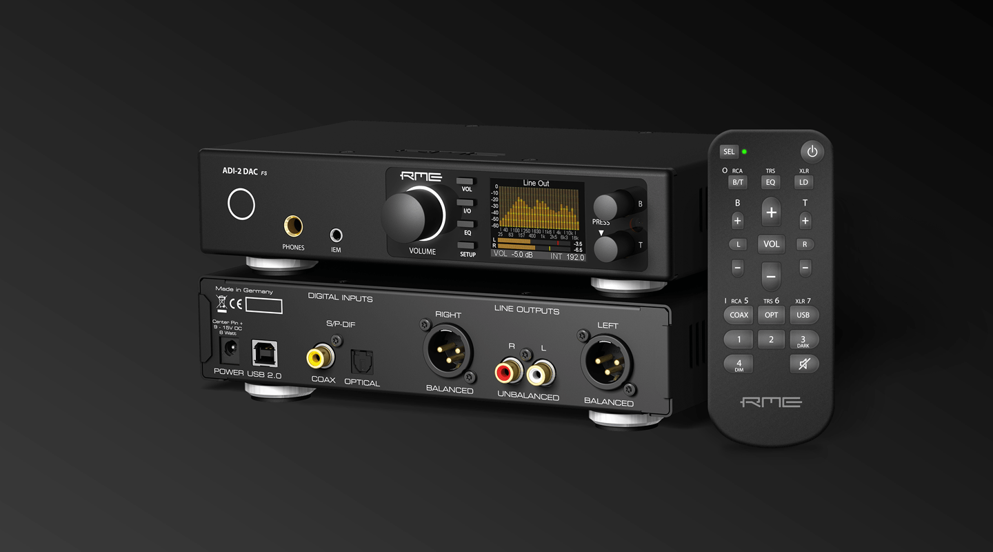 As the most versatile DAC available, the ADI-2 DAC offers balanced/unbalanced analog I/Os, an Extreme Power headphone output, a super low noise IEM output, SteadyClock FS, 4-stage hardware output level control, DSP-based signal processing, external power supply operation, Class Compliant USB compatibility, sample rates up to 768 kHz as well as DSD playback. The SPDIF input signal can even be recorded via USB — as one would expect from RME the DAC is a true 2 channel Full Duplex audio interface.