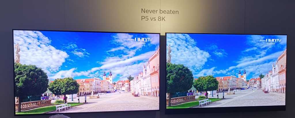 V upscalingu si věří stejně jako Samsung a 8K k tomu prý nepotřebuje. Na prezentaci běželo stejné video na televizorech Philips OLED 903 a Samsung QLED 8K a z běžné pozorovací vzdálenosti nebyl vidět žádný přínos vyššího rozlišení. Procesor P5 si s obrazem poradil velmi dobře i ve své druhé generaci.