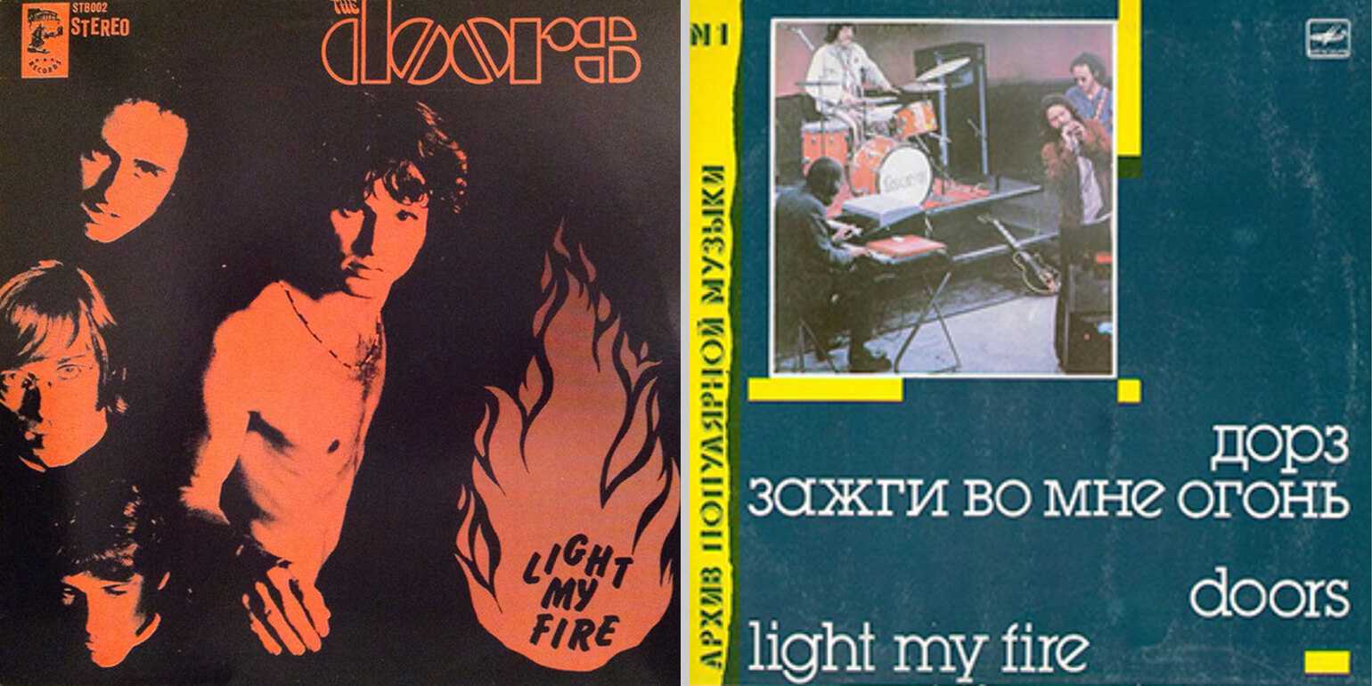 Обложки альбома Light My Fire группы The Doors в США и СССР. Изображение: Eagle Rock Entertainment Ltd. / Discogs / «Фирма Мелодия» / Discogs