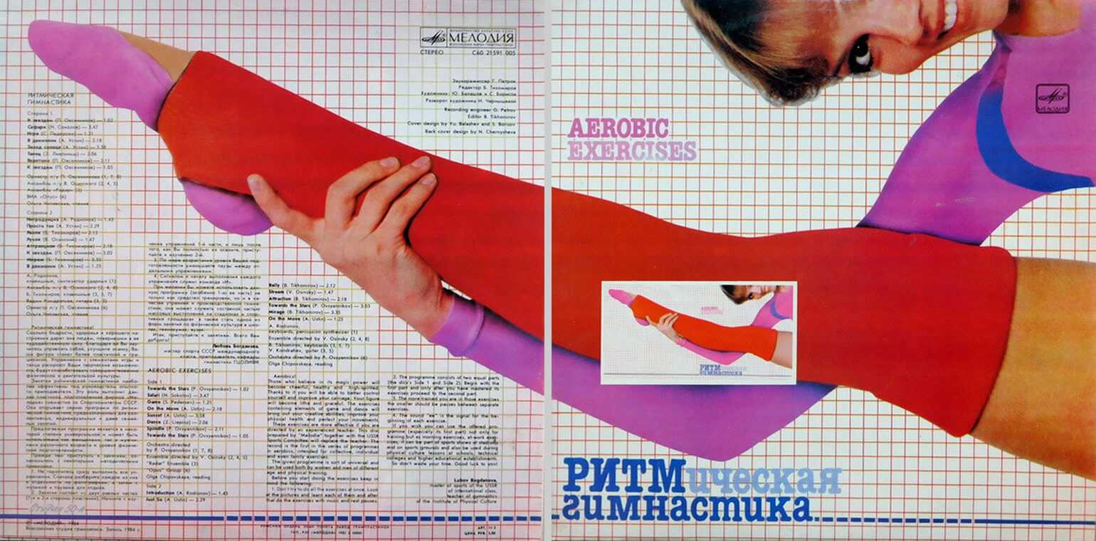 Дизайн Юрия Балашова для пластинки «Ритмическая гимнастика» студии «Мелодия». Задняя и лицевая сторона. Изображение: Юрий Балашов / «Фирма Мелодия» / Discogs