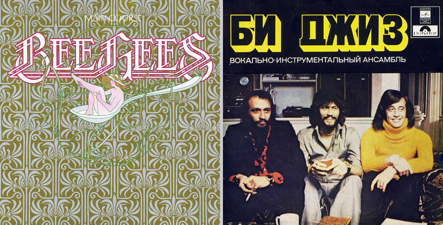 Обложка альбома Main Course группы Bee Gees в Великобритании и СССР. Изображение: RSO Records / Discogs / «Фирма Мелодия» / VinylMarket