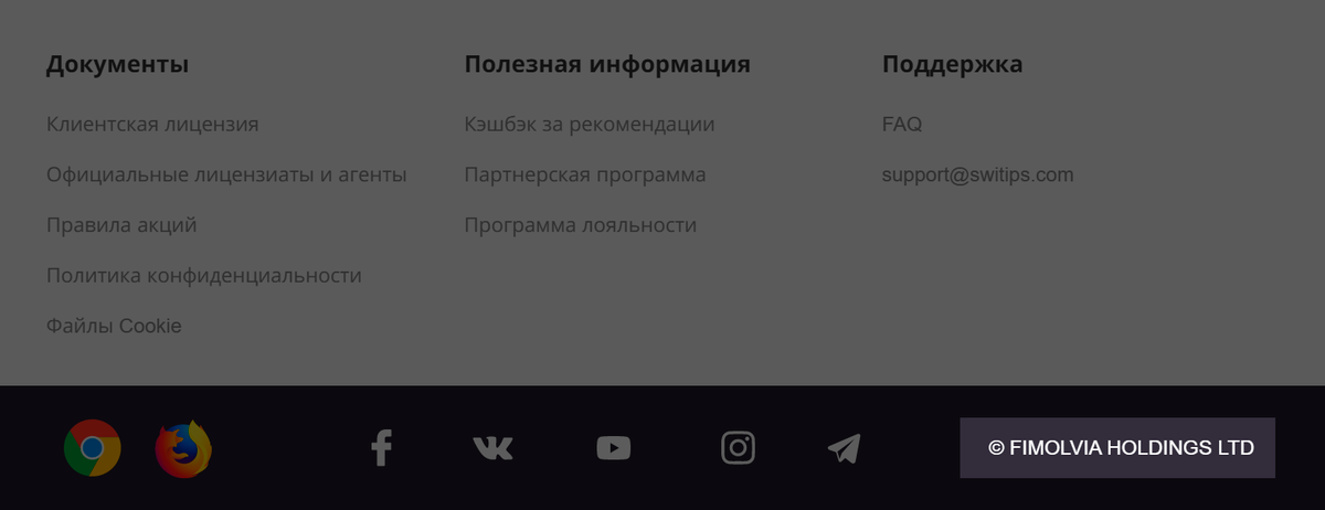 Switips называет своим юрлицом Fimolvia Holdings. Компания зарегистрирована на Кипре, поэтому разбираться с ней придется в кипрском суде по местным законам