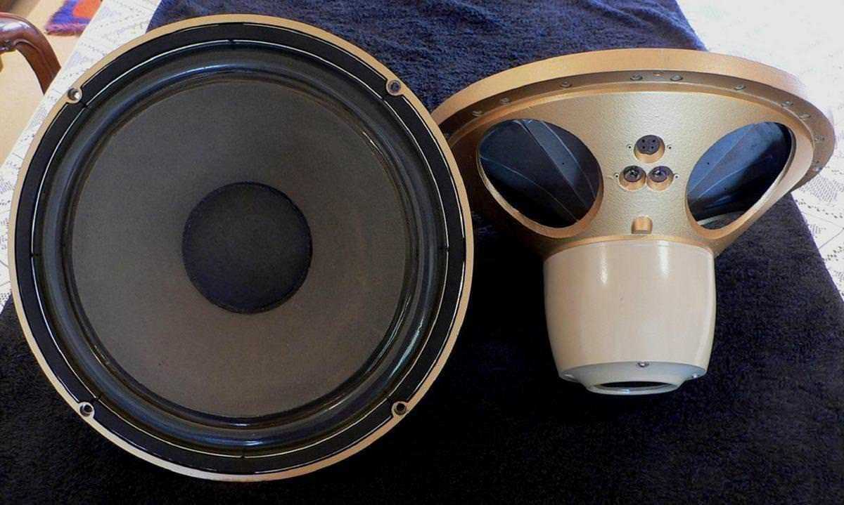 Драйверы из колонок Tannoy Monitor Gold со снятым кожухом магнитной системы Tannoy Monitor. Рупор твитера — за акустически прозрачным пылезащитным колпачком